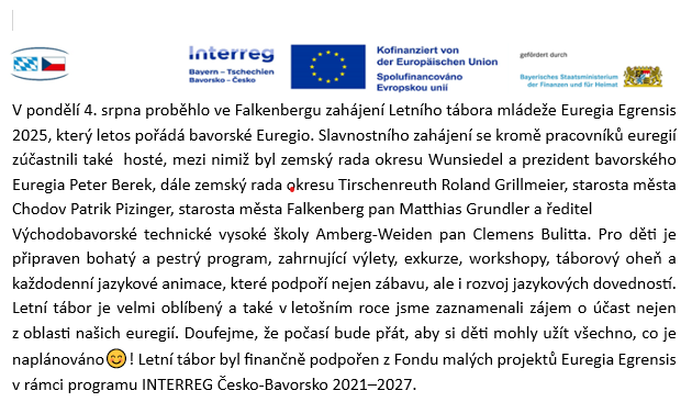 Letní tábor mládeže Euregia Egrensis 2025 zahájen